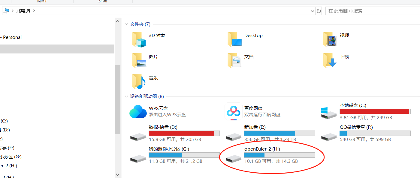 4.1.打开“我的电脑”查看U盘标签,这里是“openEuler-2”记录好,后面要用